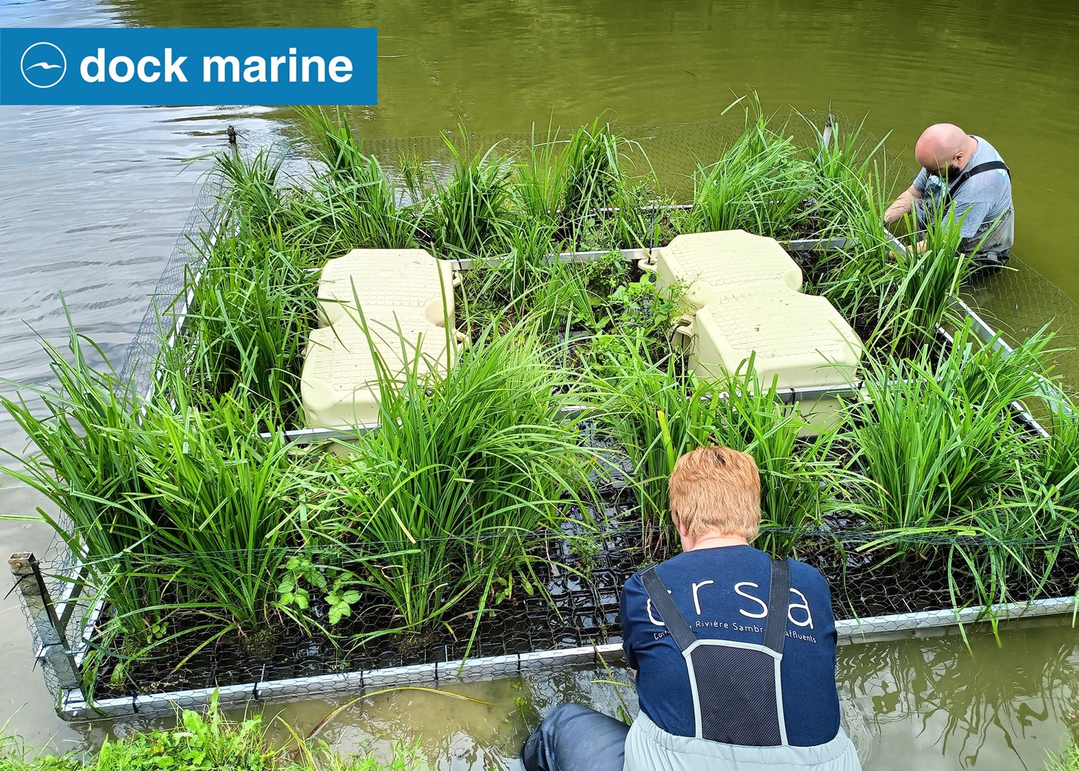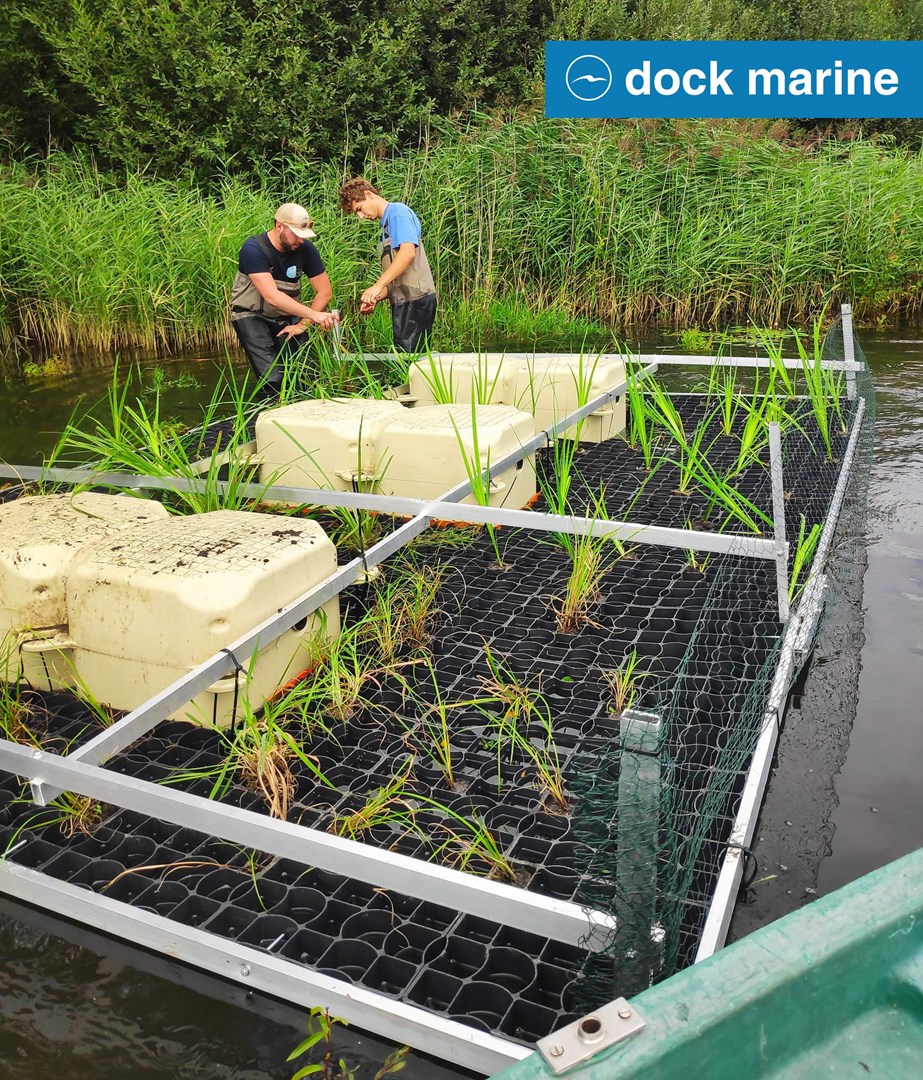 In Belgium's Sambre river, the banks of canalised watercourses are often artificial. Yet wild banks, where plant roots mingle with the water, are essential for fish, which lay their eggs, take refuge or find food there. The solution found by the Contrat de Rivière Sambre et Affluents (CRSA), which manages the fisheries resource, was to design rafts measuring 3m by 2.66 m made buoyant with two SDS-01040 double cubes, each weighing 175.5 kg. Helophytic plants of Walloon genetic stock - iris, sedges, phragmites and rushes - are planted in the screened area, with their abundant roots growing underwater. Fish benefit from this, as do amphibians, insects and birds that can nest there. Islands of biodiversity...