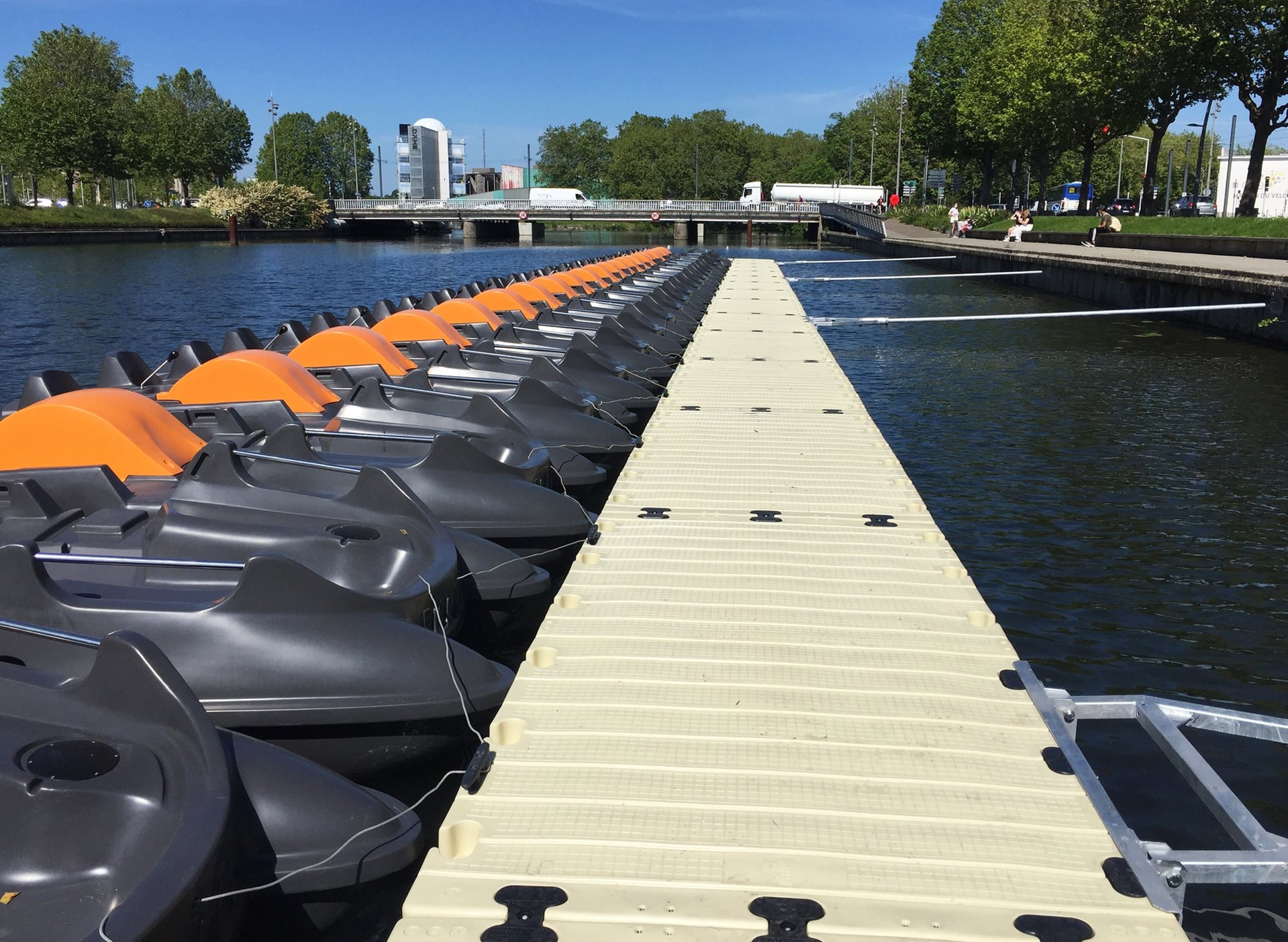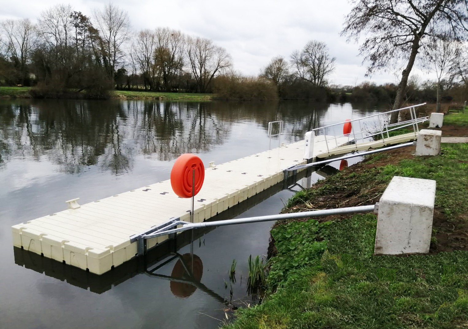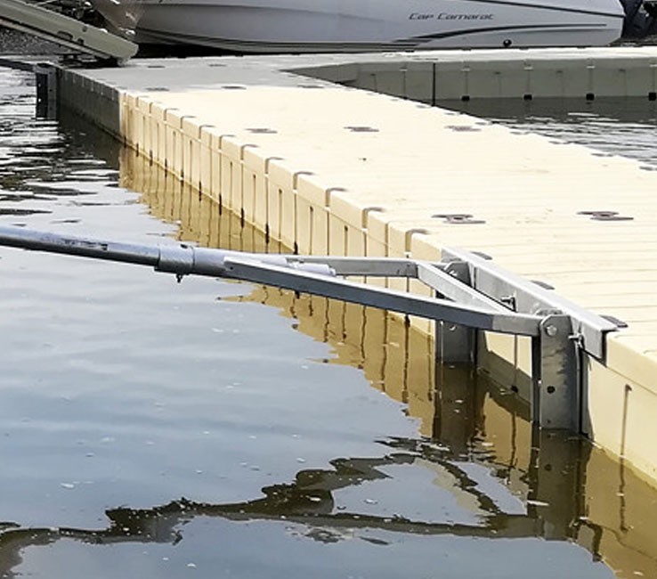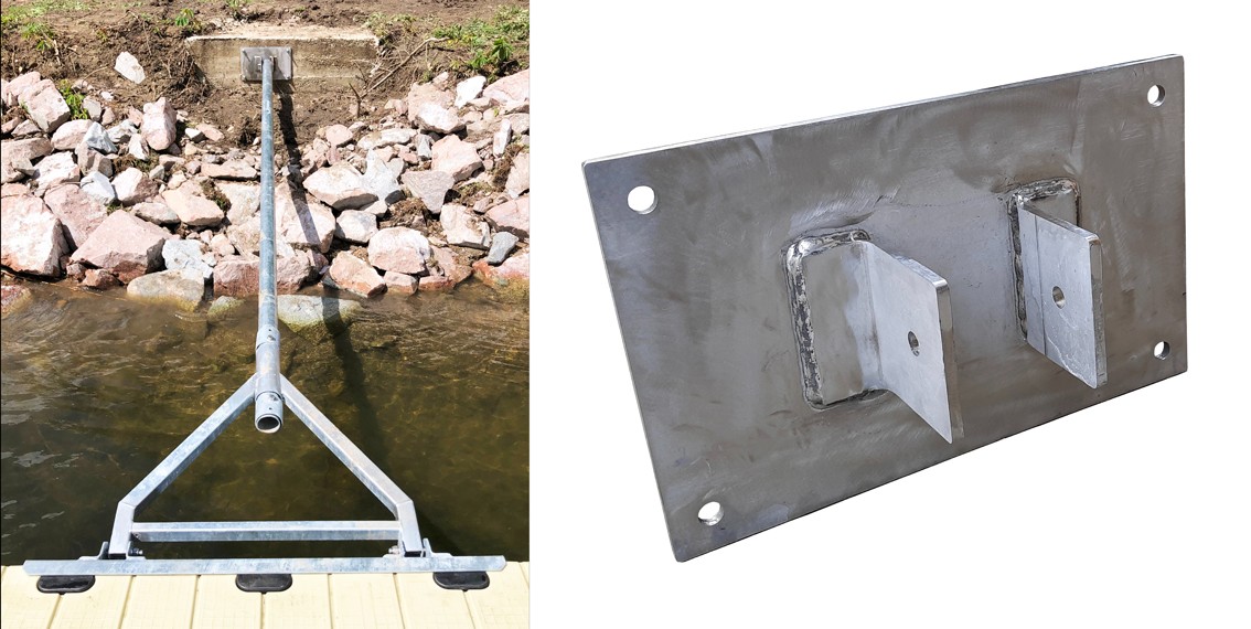 Verankering aan de oever of aan de kade met een plaat (ref.: RDS-S80094) of een gelede connector (ref.: RDS-80009520).