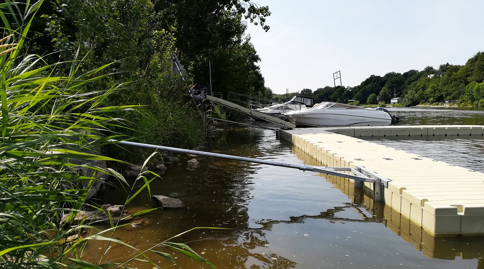 Gegalvaniseerde stalen buis (60 mm) die de steiger met de oever verbindt, max. 6 m lang.